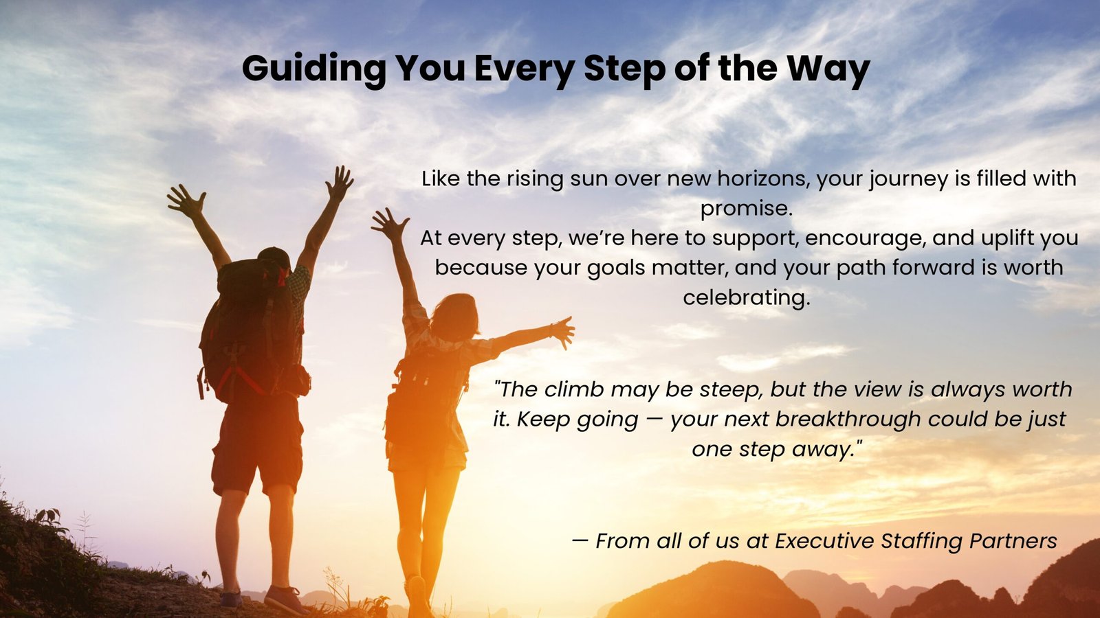 At Executive Staffing Partners, we are more than just a recruiting and staffing agency. We are a community built on trust, service, and meaningful connections. Whether you’re an executive, a healthcare professional, a new job seeker, or an organization looking to build a high-performance team, we’re here to match talent with purpose.